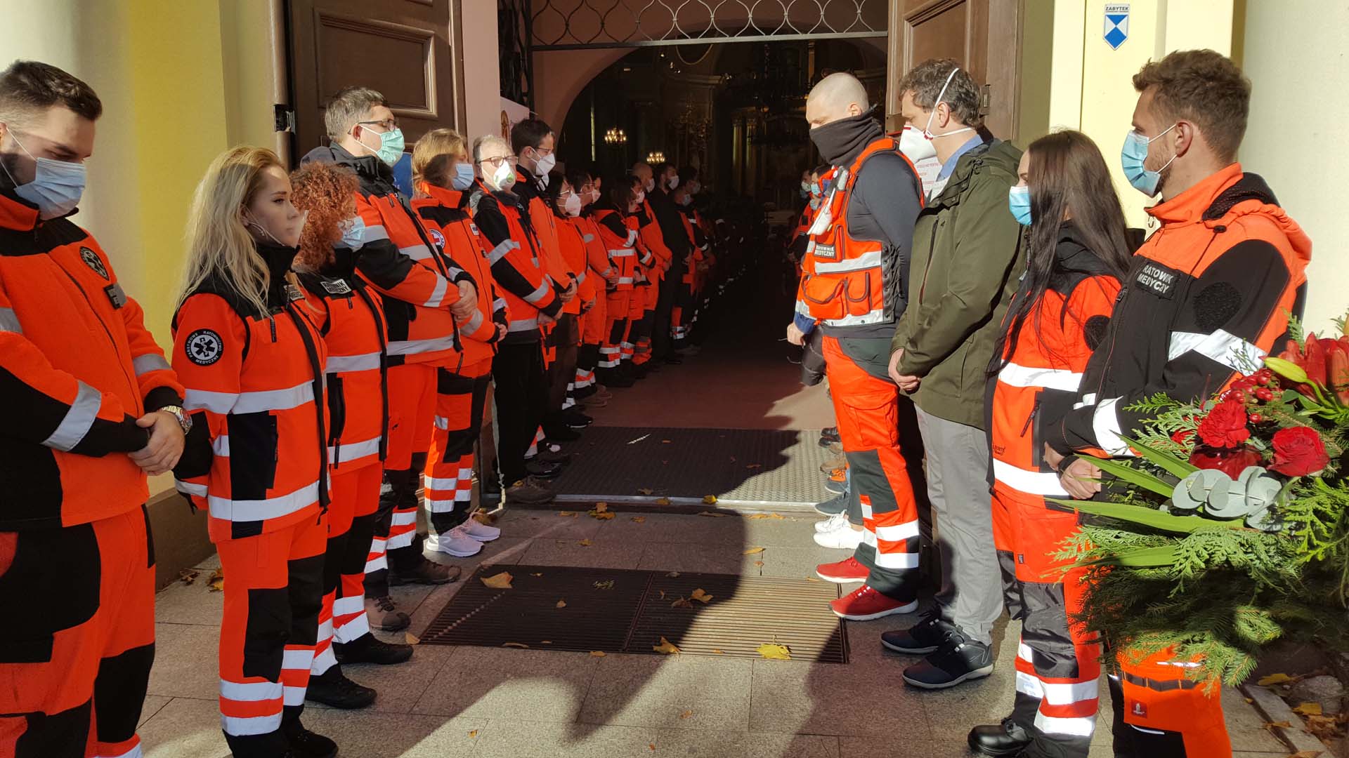 Szczególny hołd oddali Grzegorzowi motocykliści przybyli na miejsce, jak również jego koledzy z pracy - z całej Polski. Około godz. 13:30 również wszystkie oddziały pogotowia ratunkowego włączyły sygnalizację świetlną i dźwiękową, aby pokazać solidarność z rodziną Grzegorza.