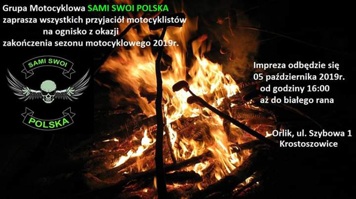 "Serdecznie zapraszamy wszystkich przyjaciół motocyklistów na ognisko do grupy SAMI SWOI POLSKA w terminie 05 października 2019 r.