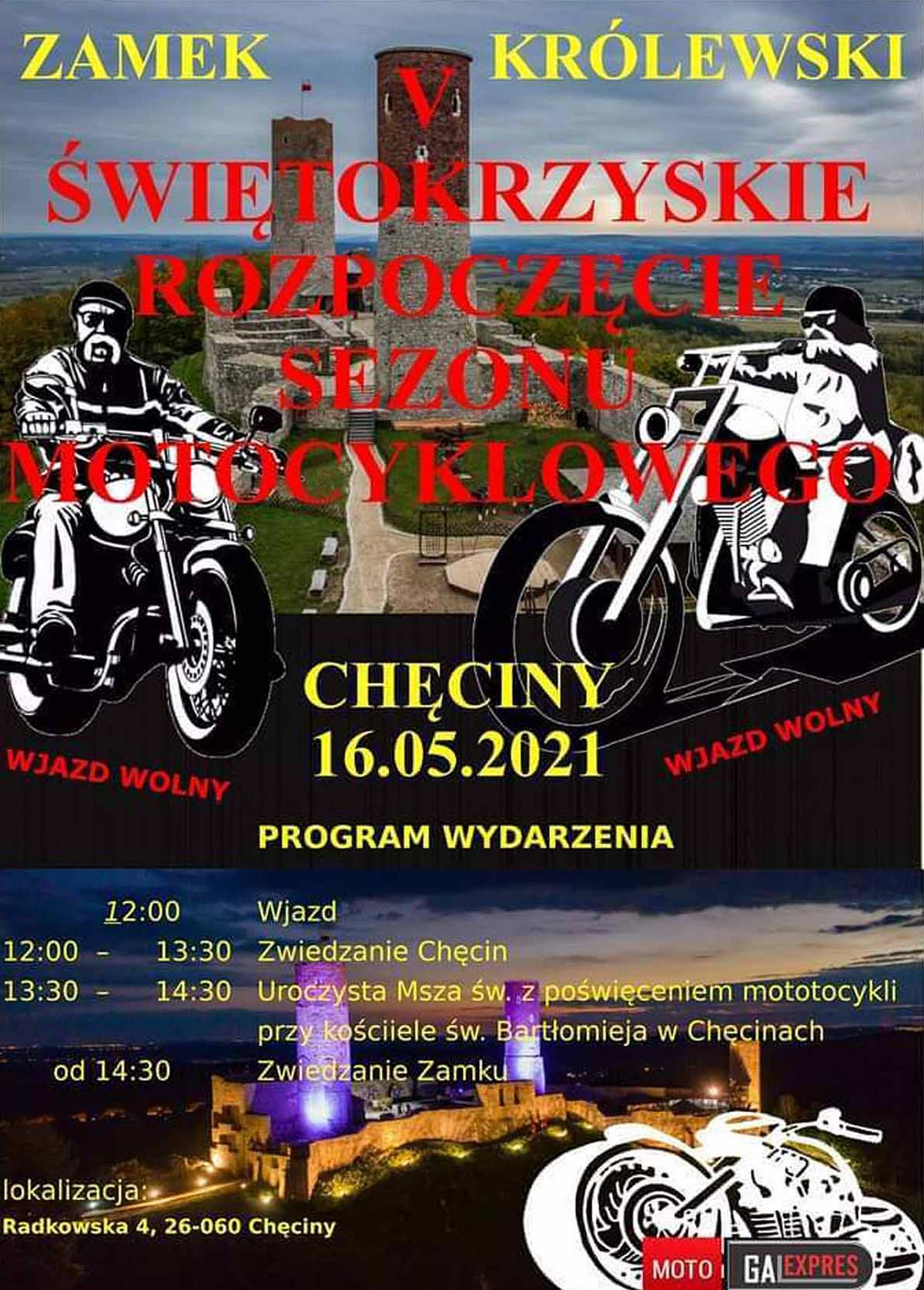 Serdecznie zapraszamy wszystkich chętnych z całego kraju na "V Świętokrzyskie Rozpoczęcie Sezonu Motocyklowego na Świętym Krzyżu". Termin został przesunięty z dnia 3 maja w związku z panującymi obostrzeniami w okresie majówki. W programie V Świętokrzyskiego Rozpoczęcia Sezonu Motocyklowego przewidziano, o godzinie 13.30 Mszę Św. Po mszy zwiedzanie klasztoru Misjonarzy Oblatów Maryi Niepokalanej - Sanktuarium Relikwii Drzewa Krzyża Świętego.