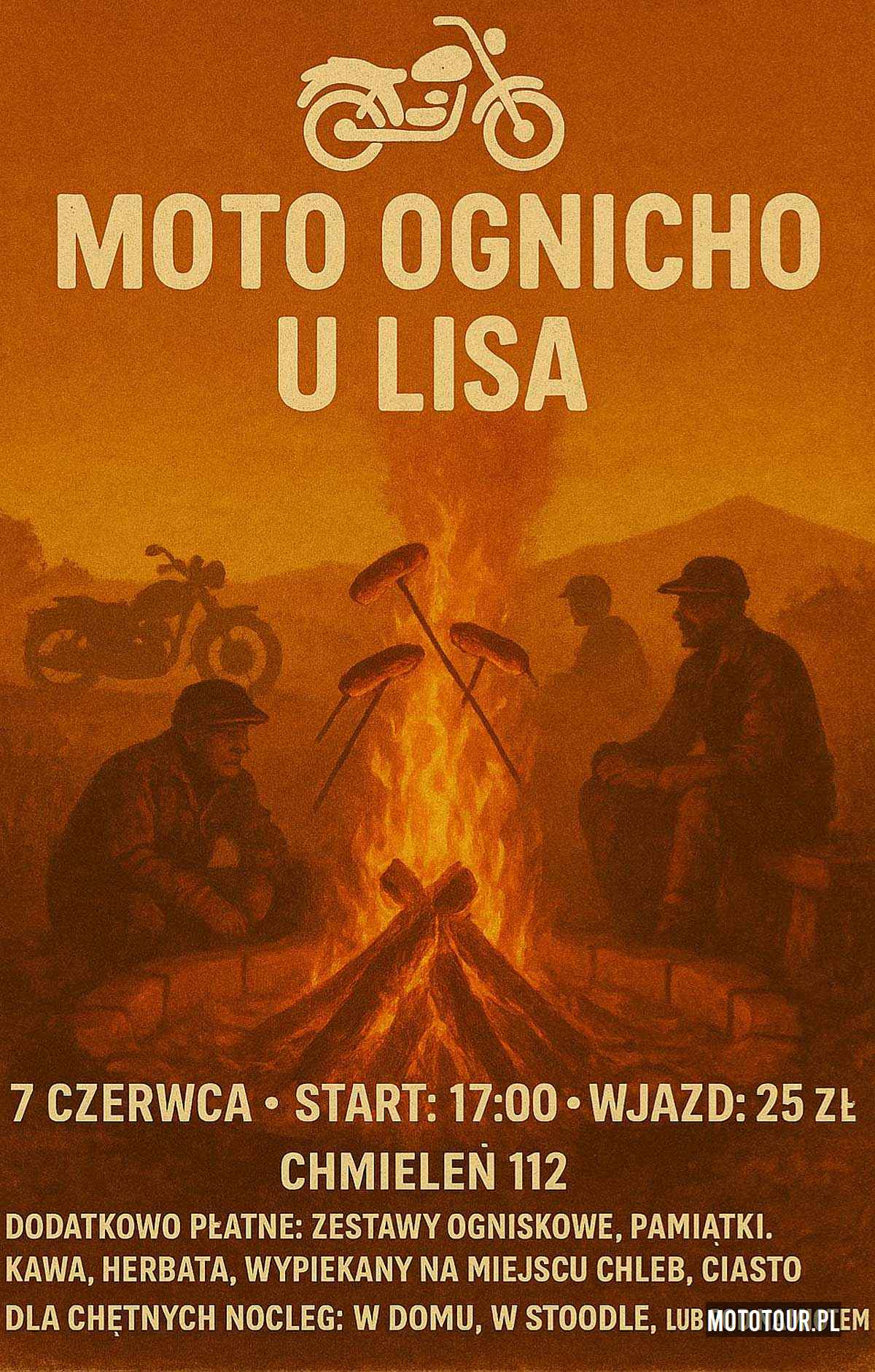 Wcześniej były zloty motocyklowe w Karkonoszach w Chmieleniu, a w tym roku Karkonoska Przystań Motocyklowa u Lisa przygotował wersję jednodniową Moto Ognicho u Lisa 2025. Rezerwując nocleg wjazd masz w cenie. Dla tych co zostaną na kolejny dzień, opłata za nocleg pod namiotem 45 zł, w stodole 80 zł, w domu 110 zł od osoby. Przystań Motocyklowa u Lisa znajduje się na Dolnym Śląsku, pomiędzy Jelenią Górą (22 km), a Świeradowem-Zdrój (20 km). Można postawić namiot i zapalić grilla i ognisko, można spróbować dostać kwaterę. W cenie wliczony parking motocykla, konkursy, przejazdy. Jaka cena i szczegóły? 25 PLN.