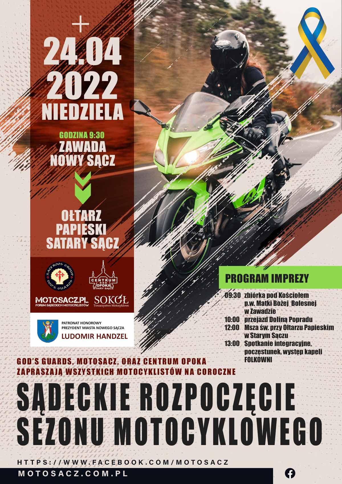Sądeckie Otwarcie Sezonu Motocyklowego 2022 w miejscowości Nowy Sącz. Początek i zbiórka: Stary Sącz - Ołtarz Papieski.