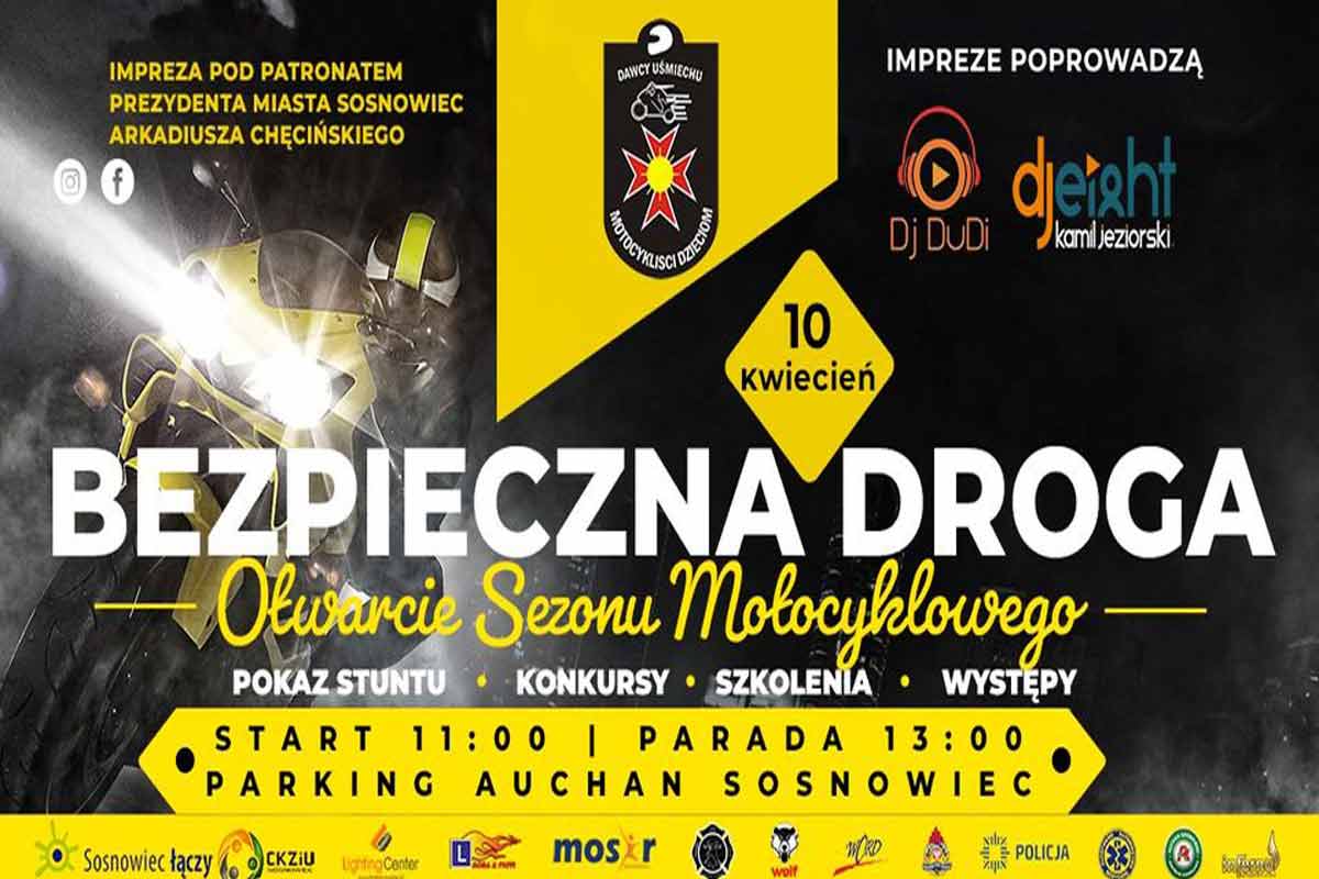 Otwarcie Sezonu Motocyklowego 2022 - Sosnowiec to impreza nakręcana przez "Dawcy Uśmiechu". Wpadajcie 10 kwietnia 2022 r. na godzinę 11, zbiórka na parkingu Auchan, ul. Zuzanny 20. Parada motocykli z Katowic z Pałacu Slawika i Antalla pod OSiR Spodek Katowice. Planowany przyjazd parady to 13:00. Oficjalne afterparty po 16.30. Karaoke prowadzone przez DJ DuDi w Inferno Cocktail Bar & Club w Sosnowcu przy ul. Targowej 9.