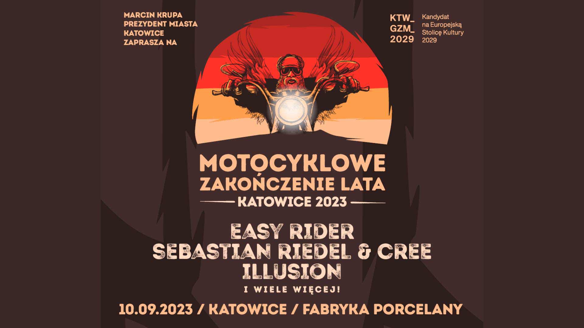 Motocyklowe Zakończenie Lata Katowice to impreza organizowana przez Katowice Miasto Muzyki UNESCO i Katowice Miasto Ogrodów. Czeka tam na Was wiele koncertów i strefa gastronomiczna. Wjazd free na wszystkie koncerty. Zaprasza Marcin Krupa - Prezydent Miasta Katowice. Bazą imprezy jest Katowicki Park Leśny, położony za lotniskiem na Muchowcu. Wpadajcie od godziny 12.00