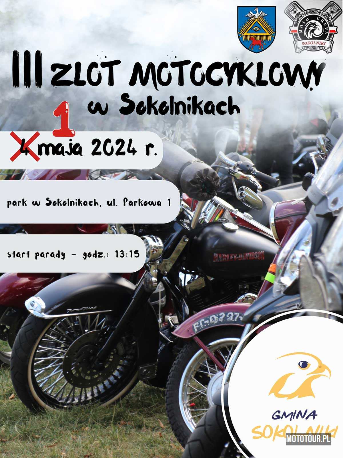 III Zlot Motocyklowy w miejscowości Sokolniki to impreza organizowana przez Gminę Sokolniki, przy współudziale miejscowego GOKSiT Sokolniki i Moto Grupy Sokolniki. Wpadajcie już 1 maja 2024 r., od godziny 13.00. W programie atrakcje konkursy dla motocyklistów, atrakcje dla miłośników dobrego, swojskiego jedzenia oraz fanów motocykli, a na koniec potańcówka. Nie zabraknie także występów kapeli. Impreza przy Gminnym Ośrodku Kultury, Sportu i Turystyki w Sokolnikach, ul. Parkowa 1, 98-420 Sokolniki.