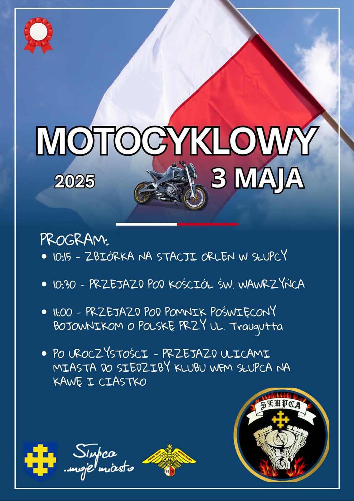 Motocyklowy 3 Maja - Słupca. Impreza nakręcana przez WFM - Wielkopolskich Fanów Motocykli. Wpadajcie już 3 maja 2025 r. o godzinie 10.15.