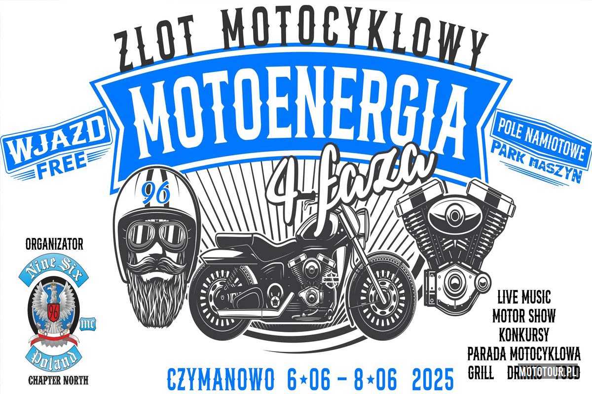 Zlot Motocyklowy nad Jeziorem Żarnowieckim. Super.... Nine Six MC Poland North powraca z kultową impreza w Polsce północnej, do tego w super lokalizacji. Po 10. latach przerwy wraca na rozkładówkę imprez, event pod nazwą MotoEnergia 2025. Motoenergia to zlot nakręcany przez ekipę Nine Six MC Poland North. Wpadajcie w terminie od 6 do 8 czerwca 2025 r. do miejscowości Czymanowo nad jeziorem Żarnowieckim, w województwie pomorskim. Impreza zapowiada się fantastycznie, do tego wstęp na zlot będzie wolny dla wszystkich zmotoryzowanych.