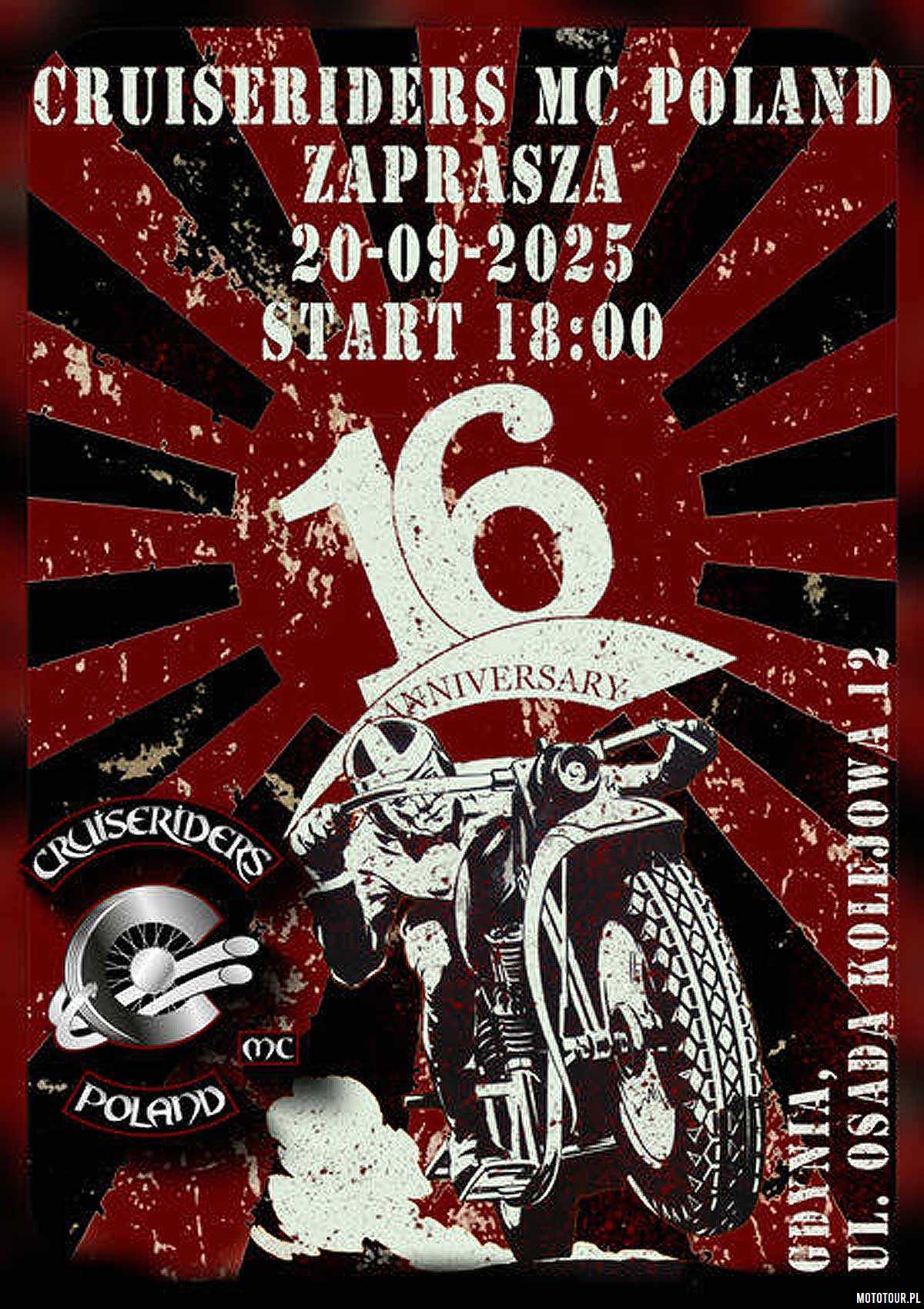 16th Anniversary to impreza nakręcana przez Cruiseriders Poland MC. W tym roku wpadajcie już 20 września 2025 r. Informacje macie na nowym plakacie u góry.