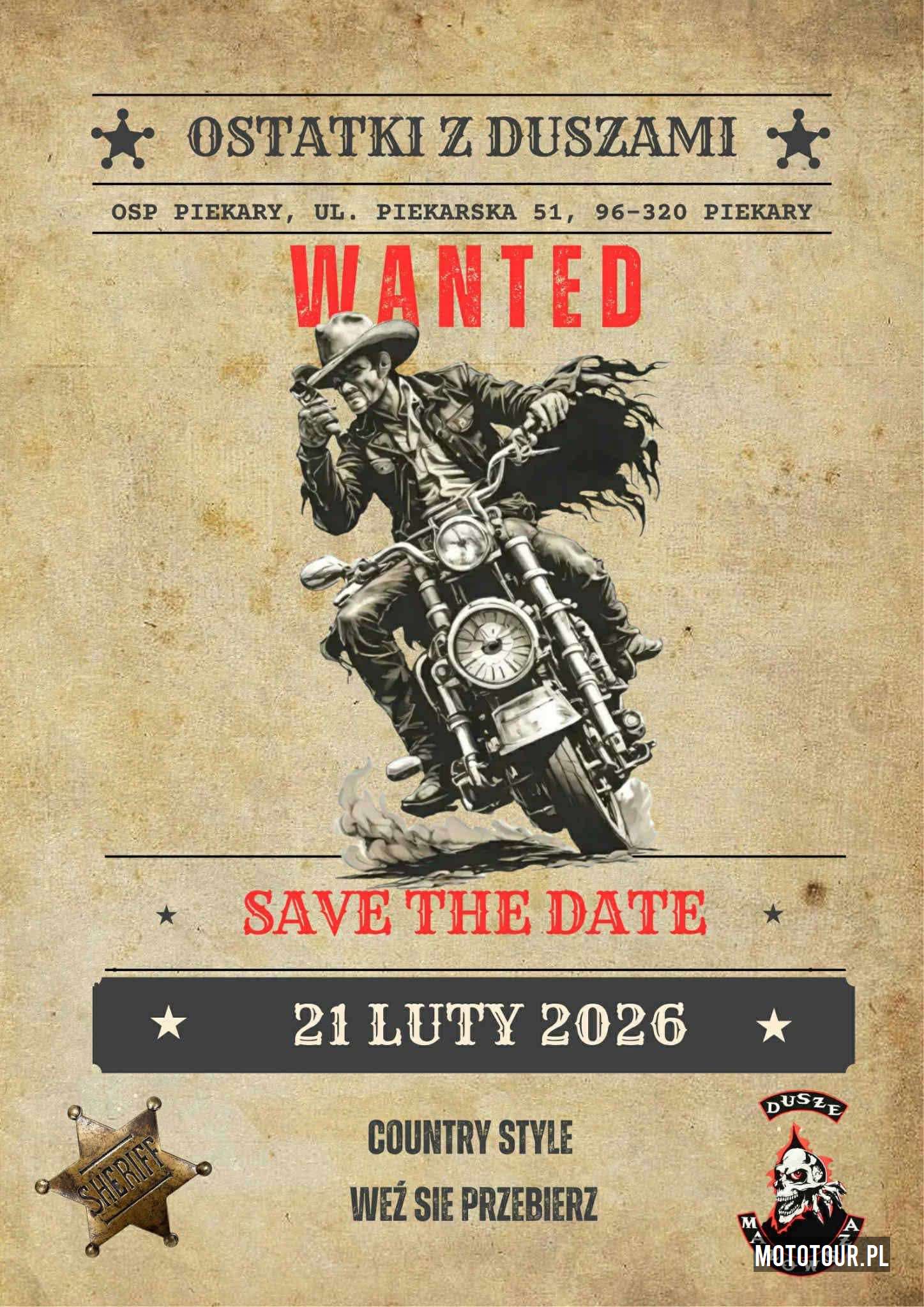 Dusze Mazowsza zapraszają na noc pod nazwą - OSTATKI Z DUSZAMI. Wpadajcie już 21.02.2026 do OSP w miejscowości 96-320 Piekary. Wskazane przebranie.