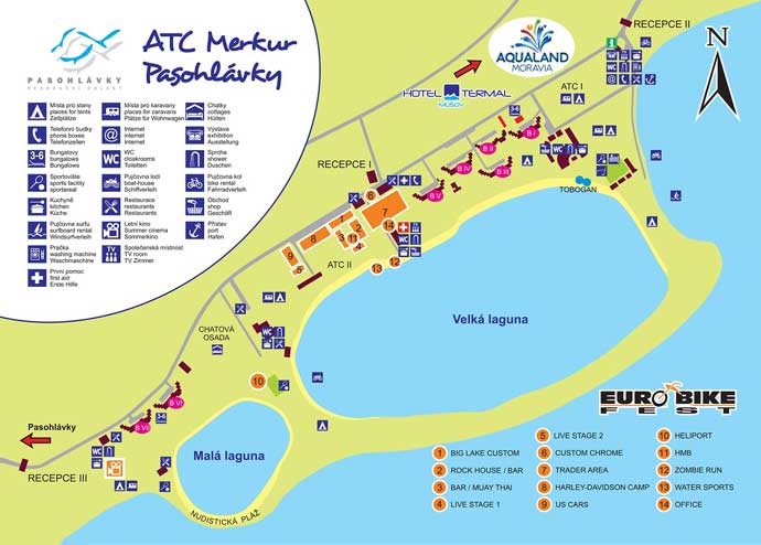 Miejscówka i baza zlotu będzie się znajdować w Pálavie (30 km na południe od Brna), na terenie campingu "Autokemp ATC Merkur Pasohlávky". Campus Euro Bike Fest to duża przestrzeń o powierzchni dwudziestu hektarów w sąsiedztwie jezior Mušovských.