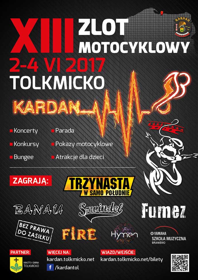 Po raz trzynasty zapraszamy wszystkich na północ, gdzie odbędzie się kolejny zlot motocyklowy Kardan Tolkmicko. Impreza przednia, koncerty, nowe znajomości, piękne widoki i niezapomniane wrażenia w pakiecie podstawowym.