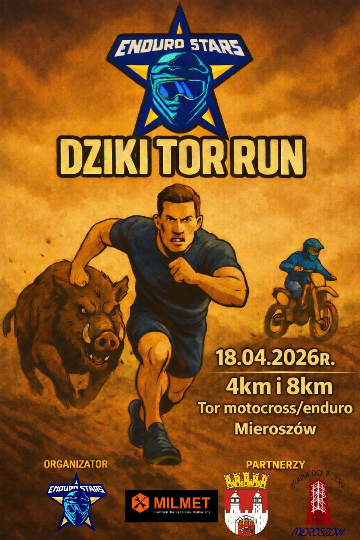 DZIKI TOR RUN odbędzie się już 18 kwietnia 2026. To nowa impreza biegowa na mapie Dolnego Śląska, dedykowana dla pasjonatów biegów, enduro, cross country. Dziki Tor Run to bieg przełajowy rozgrywany na terenie toru motocrossowego w Mieroszowie. Trasa prowadzi po naturalnym, urozmaiconym terenie, bez przeszkód technicznych – liczy się bieg, tempo i dobra zabawa.